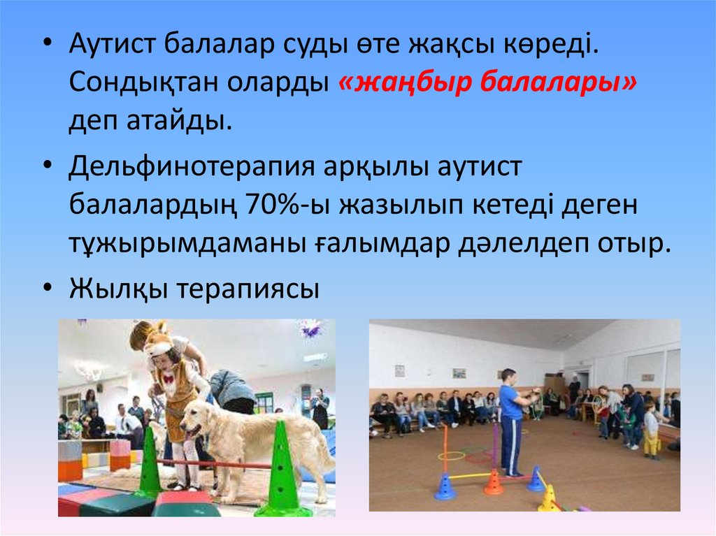 • Аутист балалар суды өте жақсы көреді.Сондықтан оларды «жаңбыр балалары»