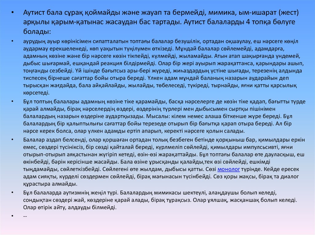 • Аутизм терминінің астарында аутизммәселесін қарастырушы