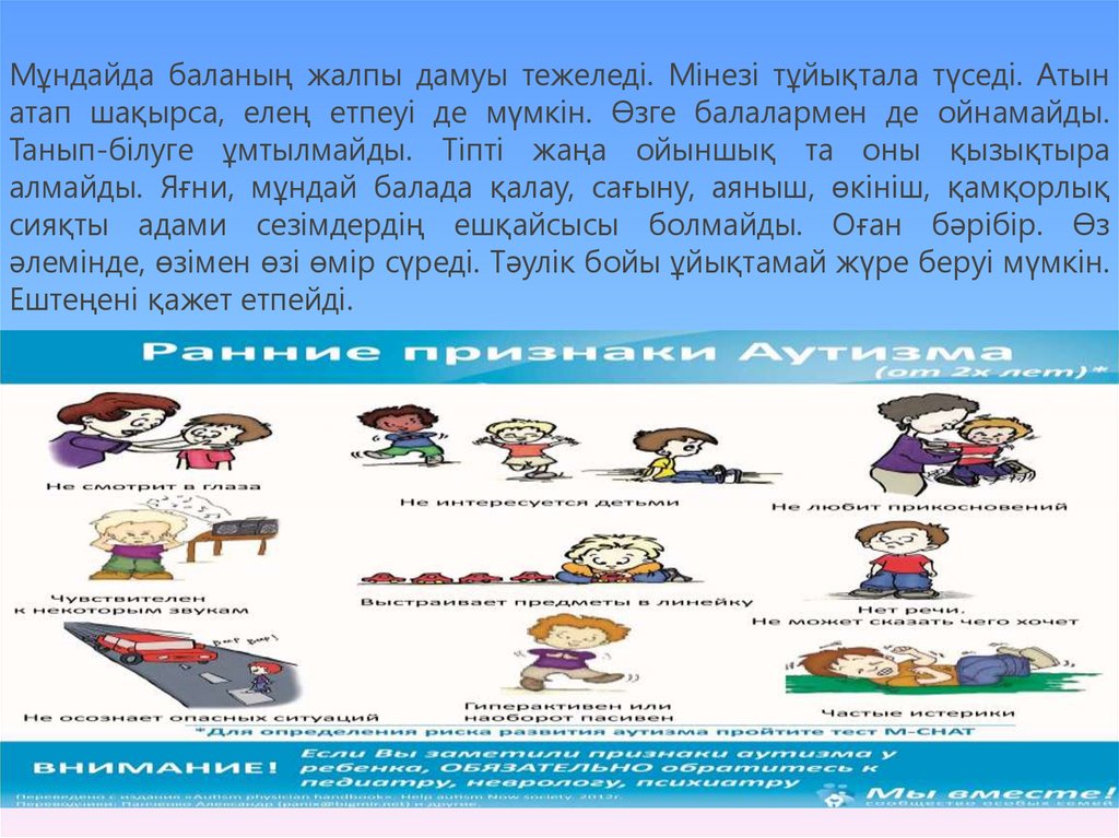 салынған кездегі көңіл күйі. Аутизм – бала дамуындағы