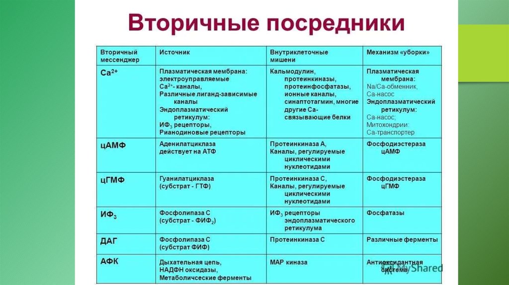 Постсинаптическая трансформация сигнала:первичные и вторичные посредники, G-белки и