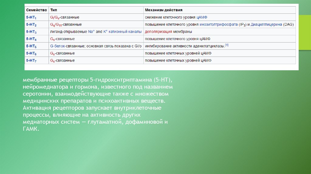 мембранные рецепторы 5-гидрокситриптамина (5-HT),нейромедиатора и гормона, известного под названием