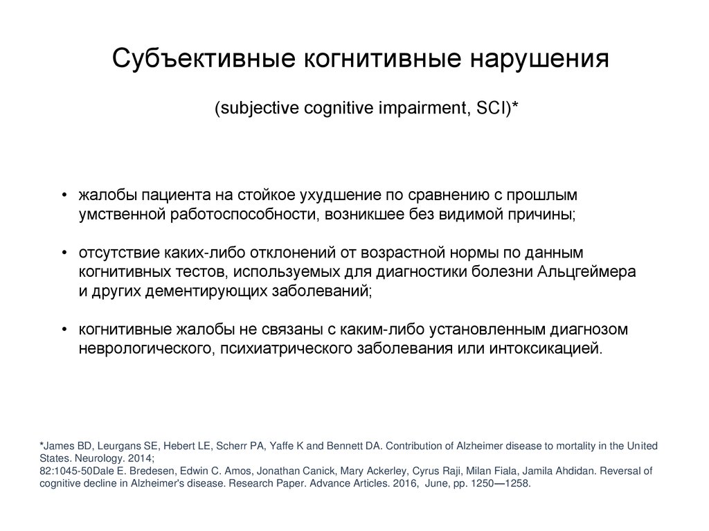 Субъективные когнитивные нарушения(subjective cognitive impairment, SCI)*