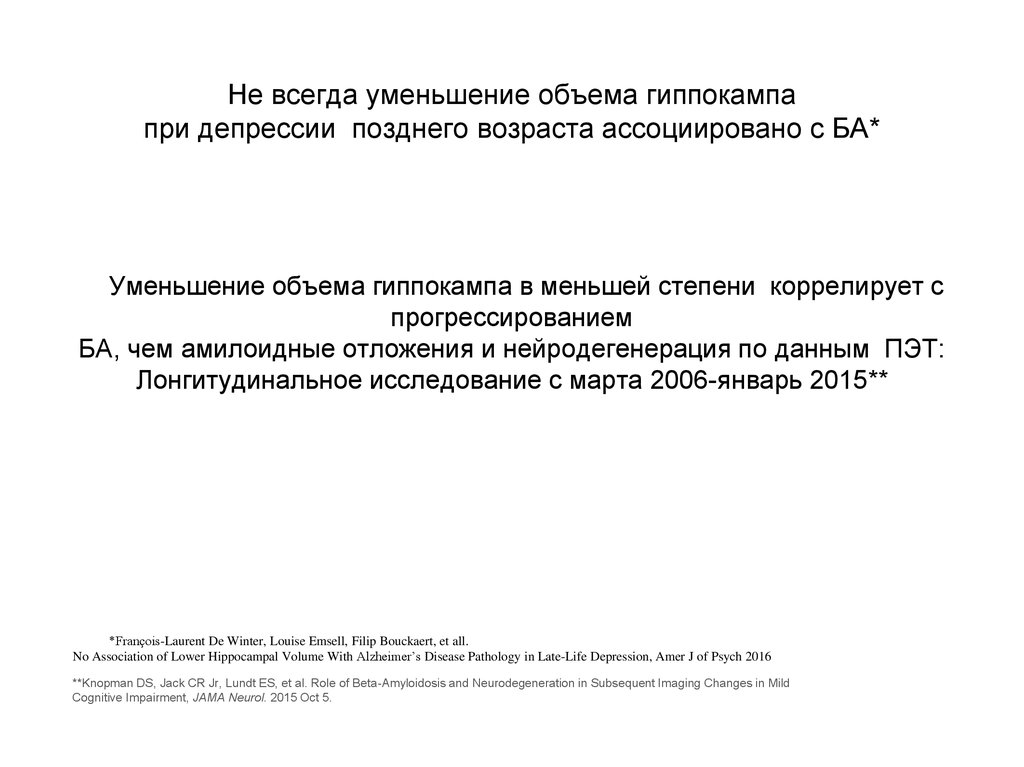 Не всегда уменьшение объема гиппокампапри депрессии позднего возраста ассоциировано с БА*