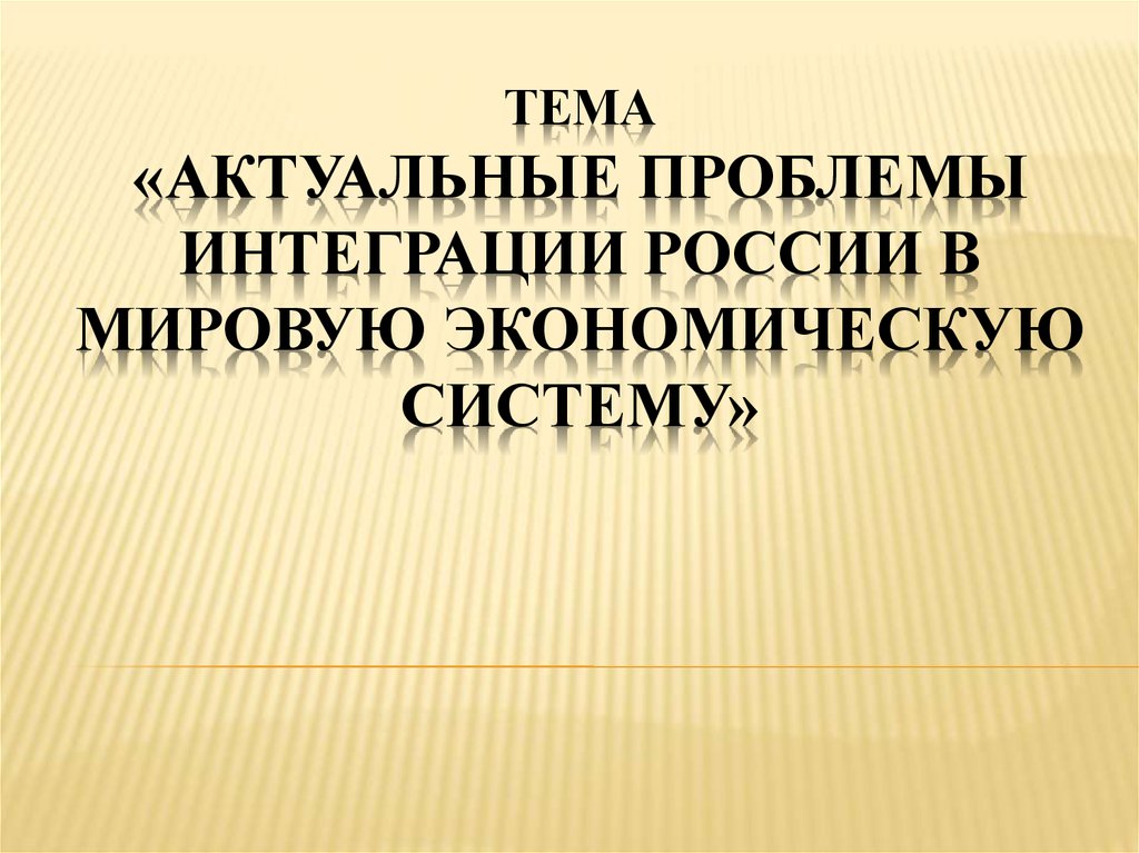 1. Тема «Актуальные проблемы интеграции России в мировую экономическую систему»