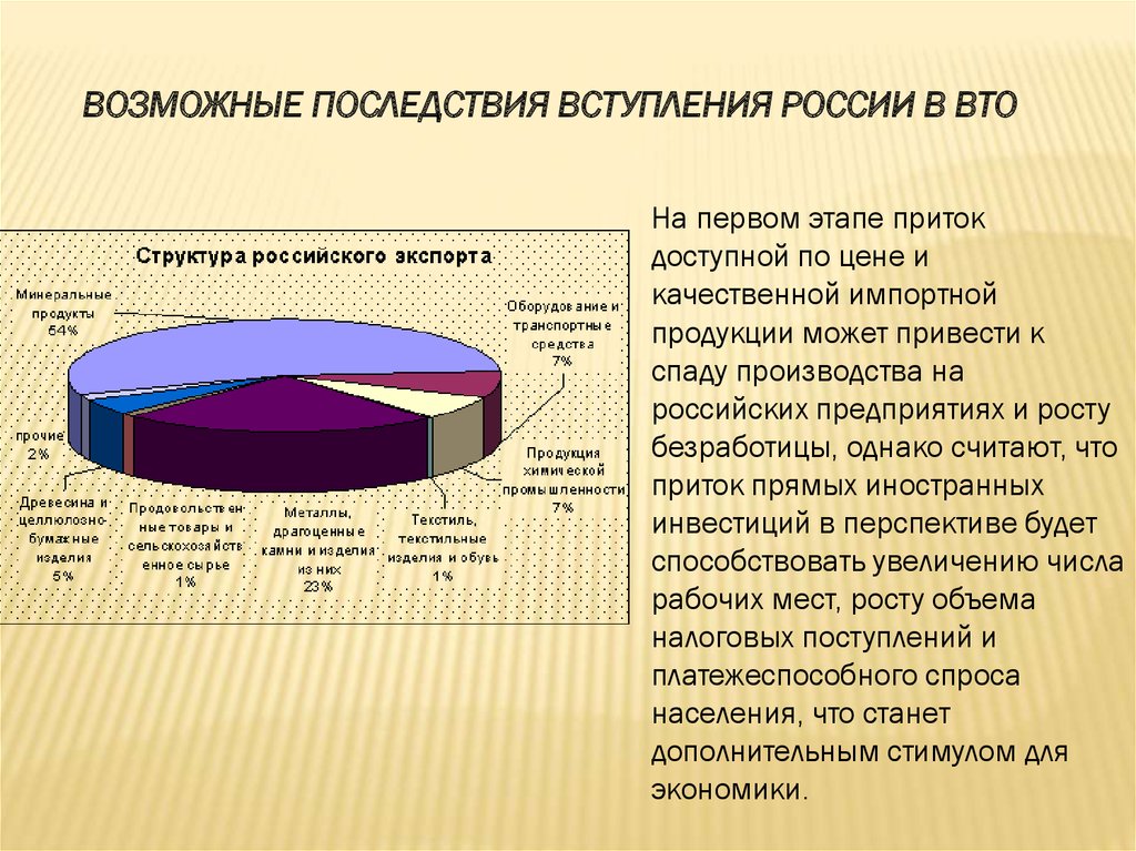 ВОЗМОЖНЫЕ ПОСЛЕДСТВИЯ ВСТУПЛЕНИЯ РОССИИ В ВТОНа первом этапе приток