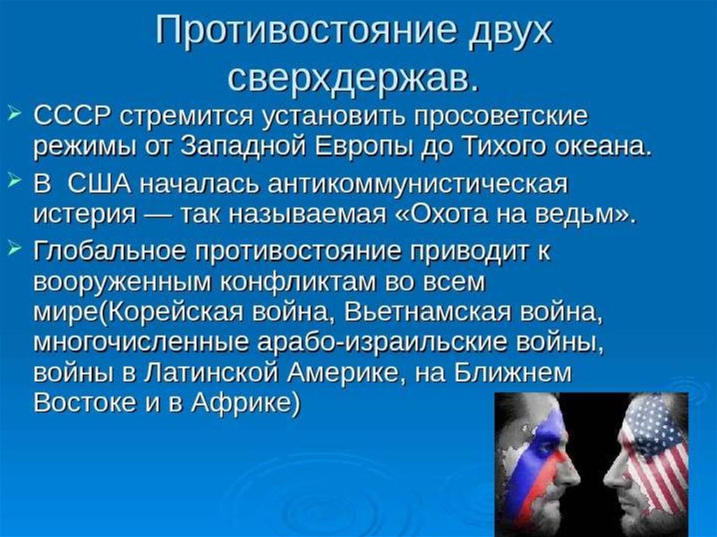 влияние в мире (так называемая «холодная война»), определявшее развитие