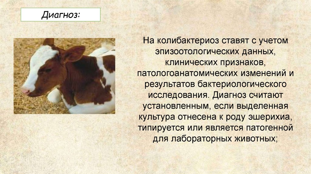 Диагноз:На колибактериоз ставят с учетом