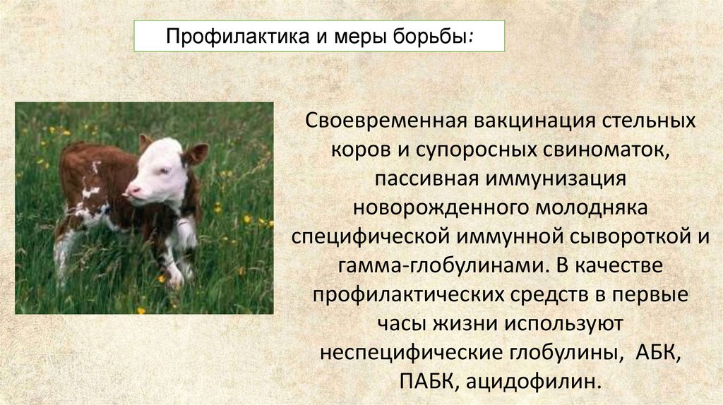 Профилактика и меры борьбы:Своевременная вакцинация стельных