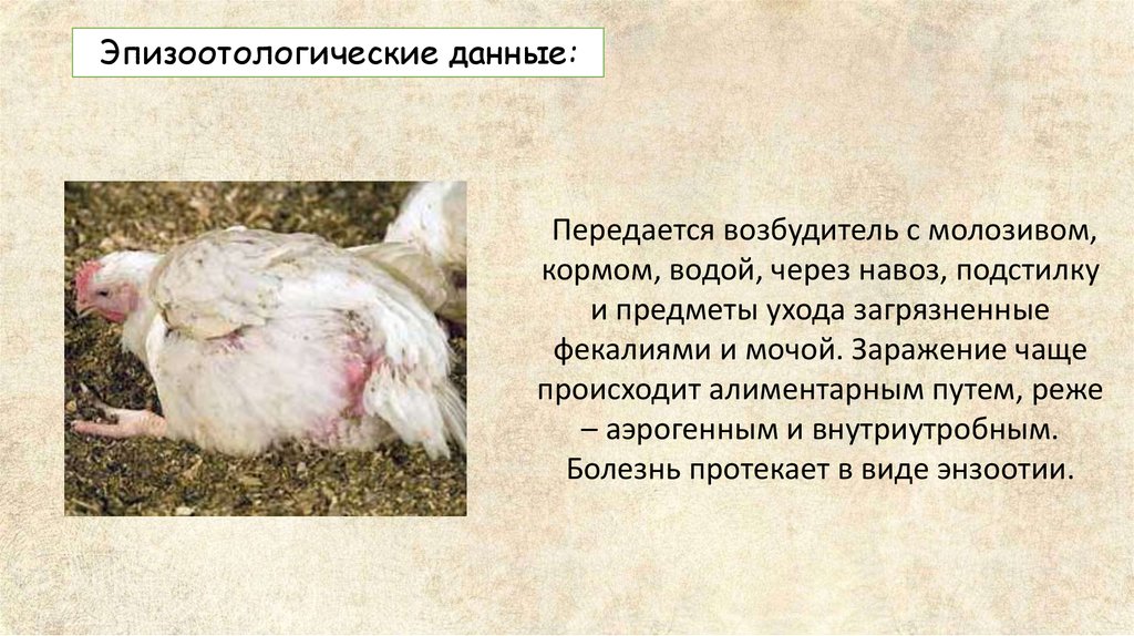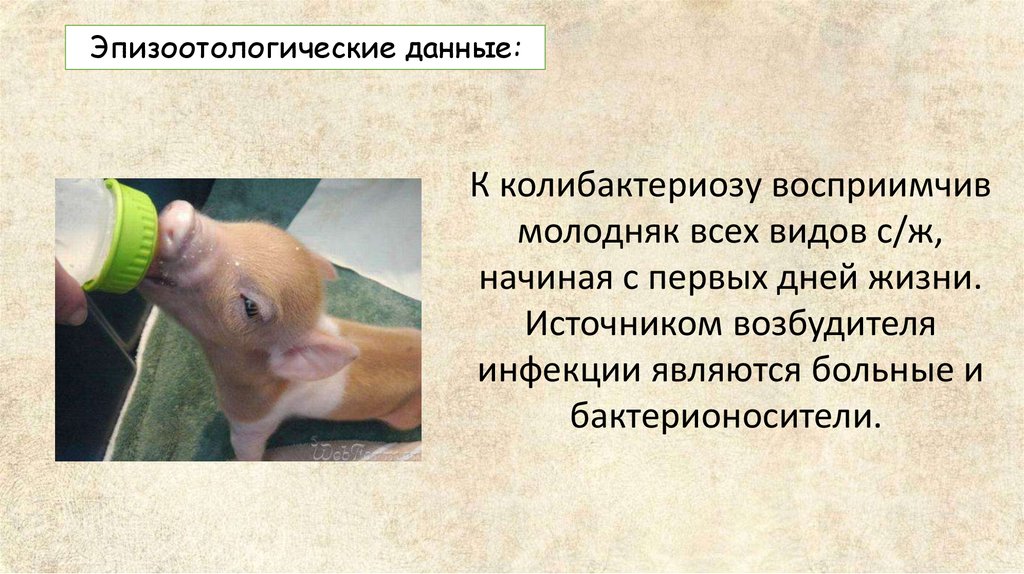 Эпизоотологические данные:К колибактериозу восприимчив