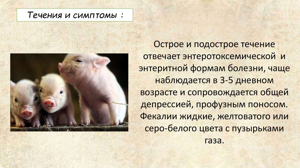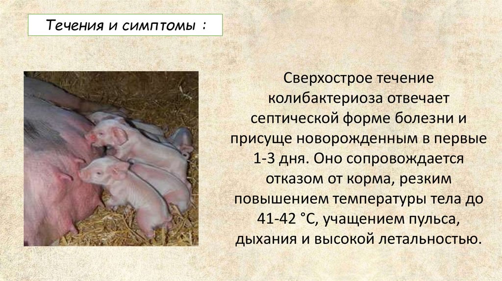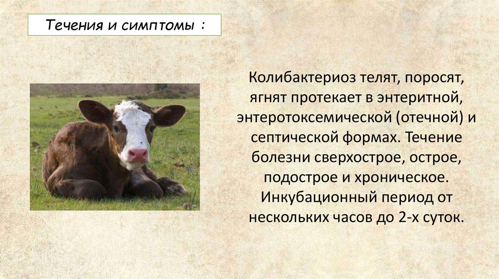 Течения и симптомы :Колибактериоз телят, поросят,