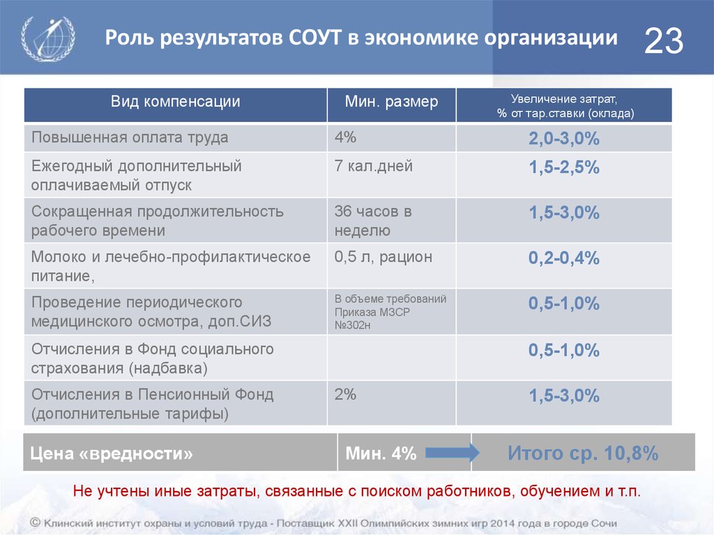 СОУТ, обоснование результатов ее