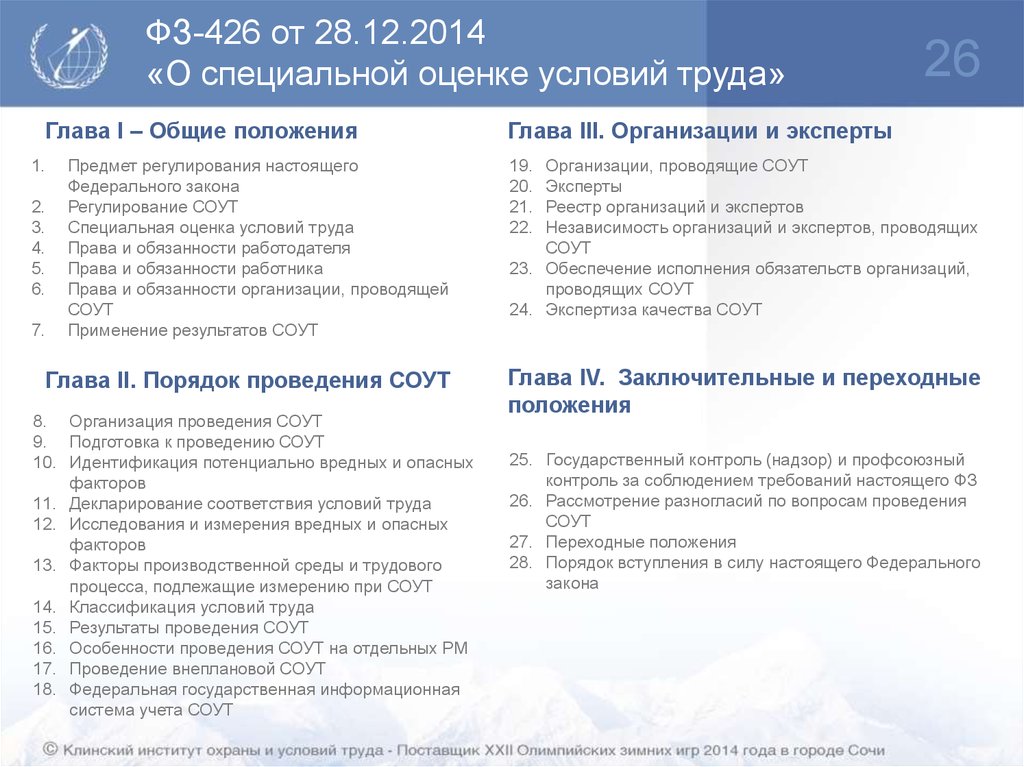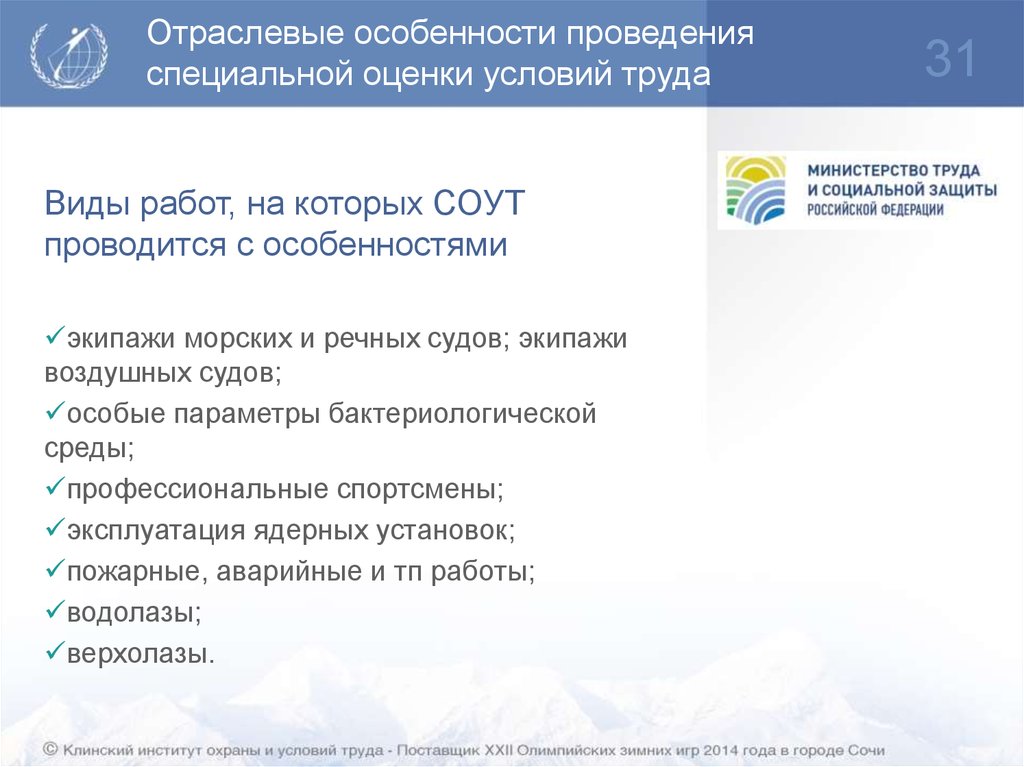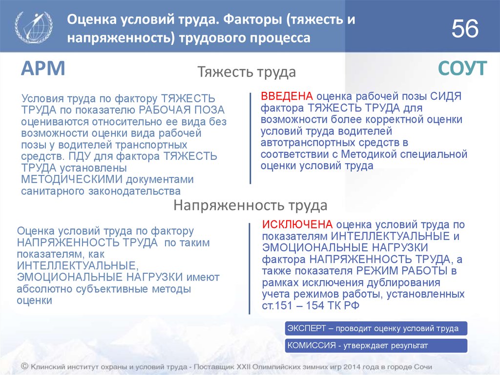 Специальная оценка условий труда.Обзор изменений законодательства РФ в области охраны