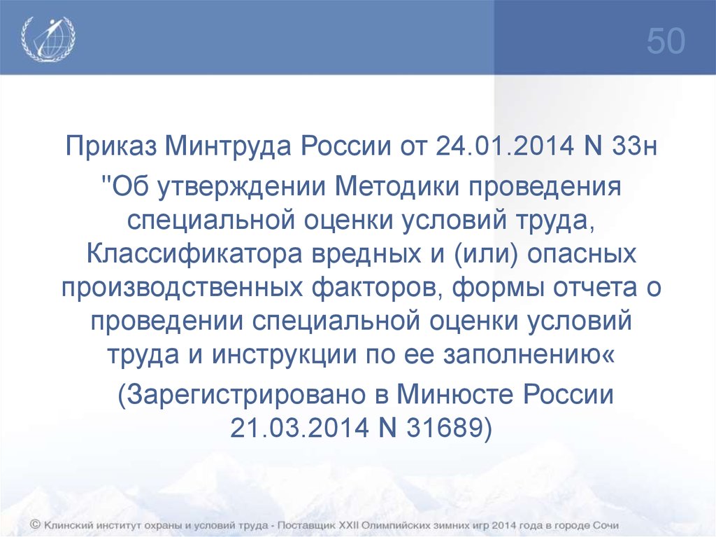 Основание для разработкиФЗ «О специальной оценке условий труда»