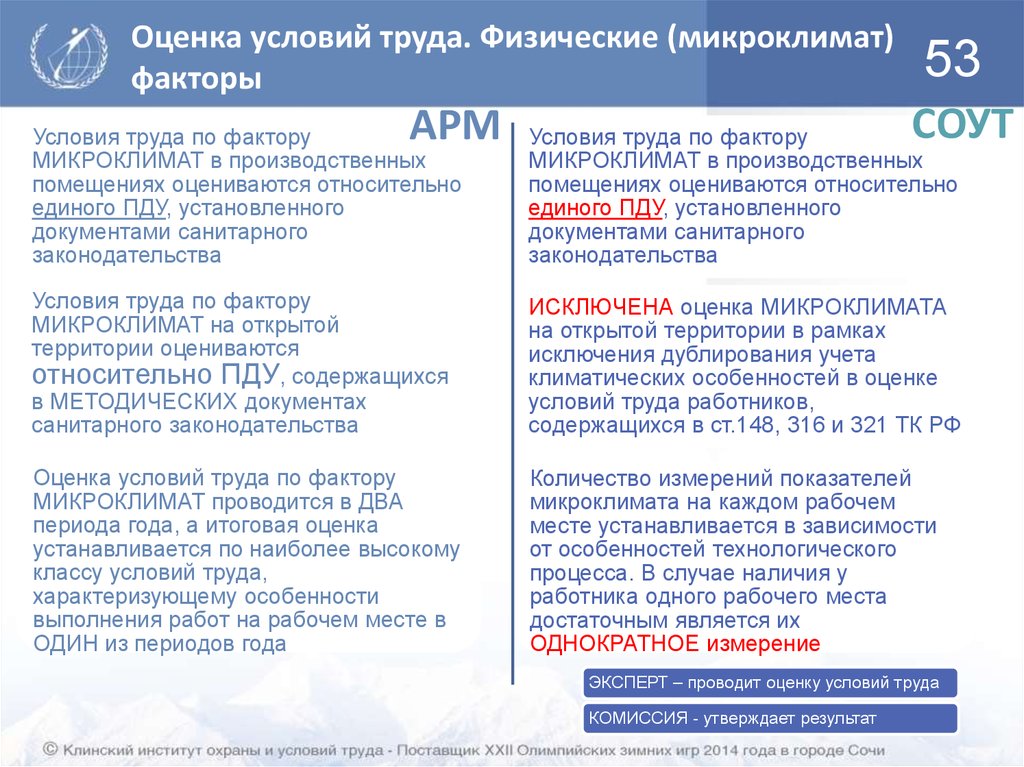 оценке условий труда"