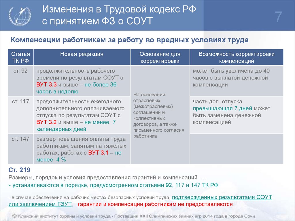 Изменения в Трудовой кодекс РФс принятием ФЗ о СОУТ