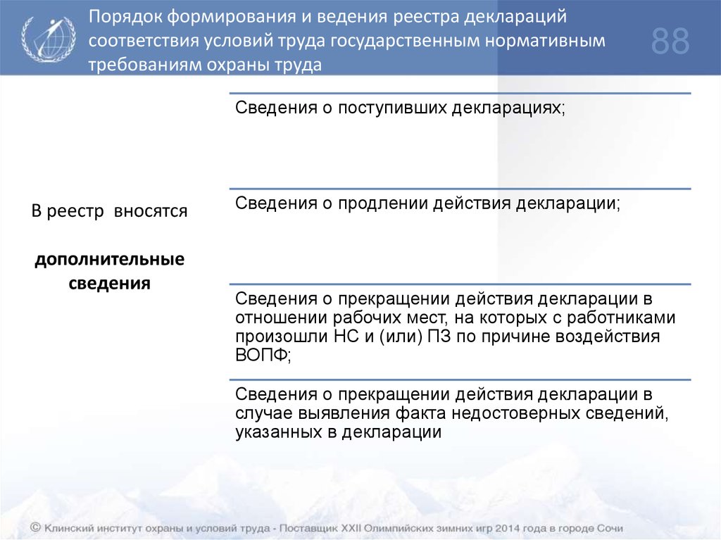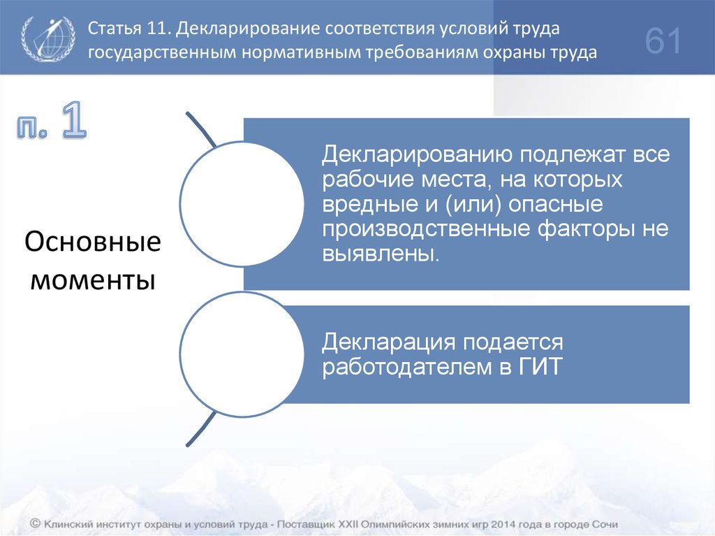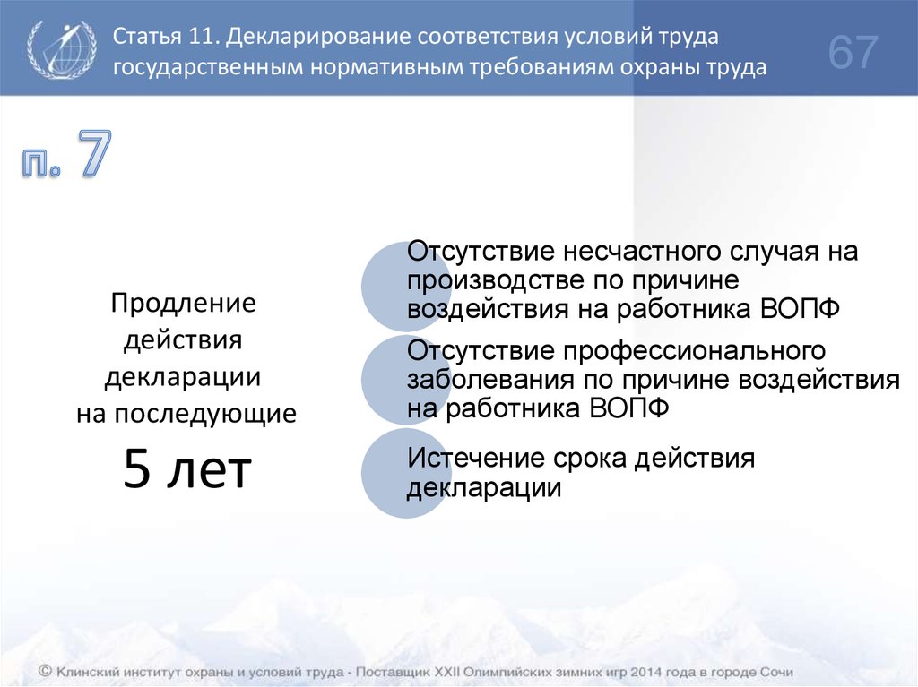 Статья 57 – Сведения об условиях труда на рабочем месте признаны