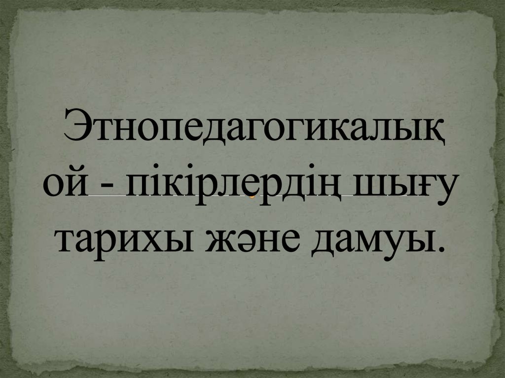1. Этнопедагогикалық ой - пікірлердің шығу тарихы және дамуы.
