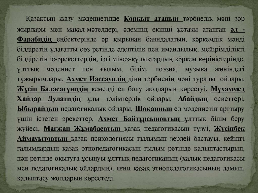 мен педагогикалық ойлардың), яғни қазақ этнопедагогикасының дамып,