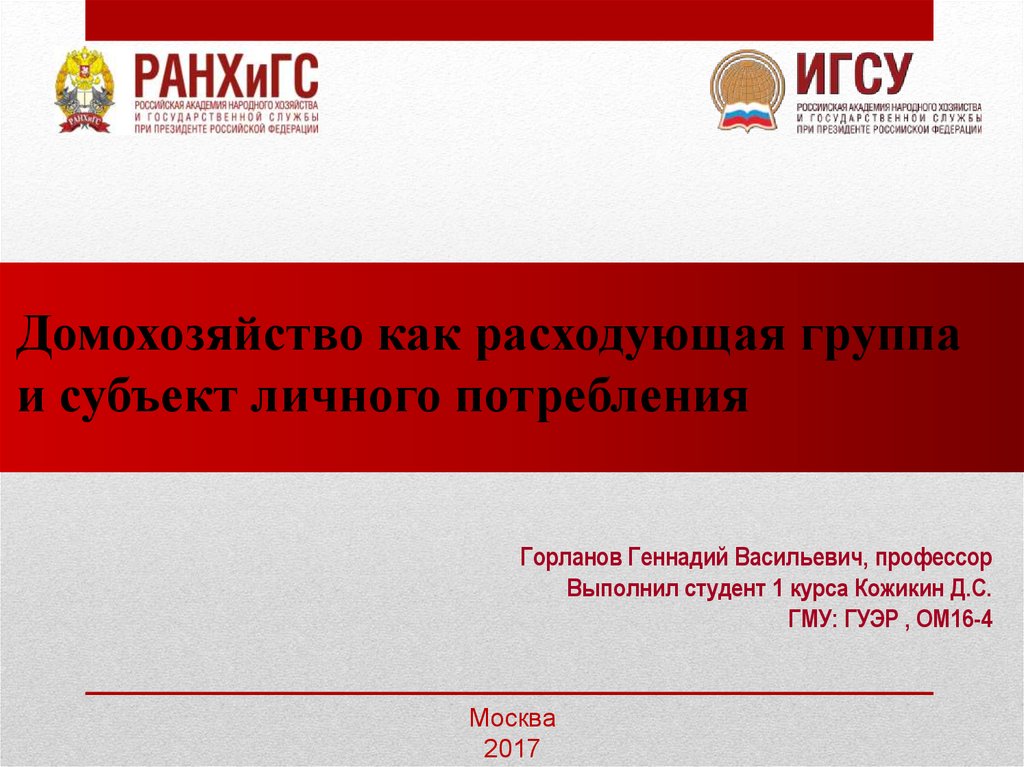 Домохозяйство как расходующая группаи субъект личного потребления