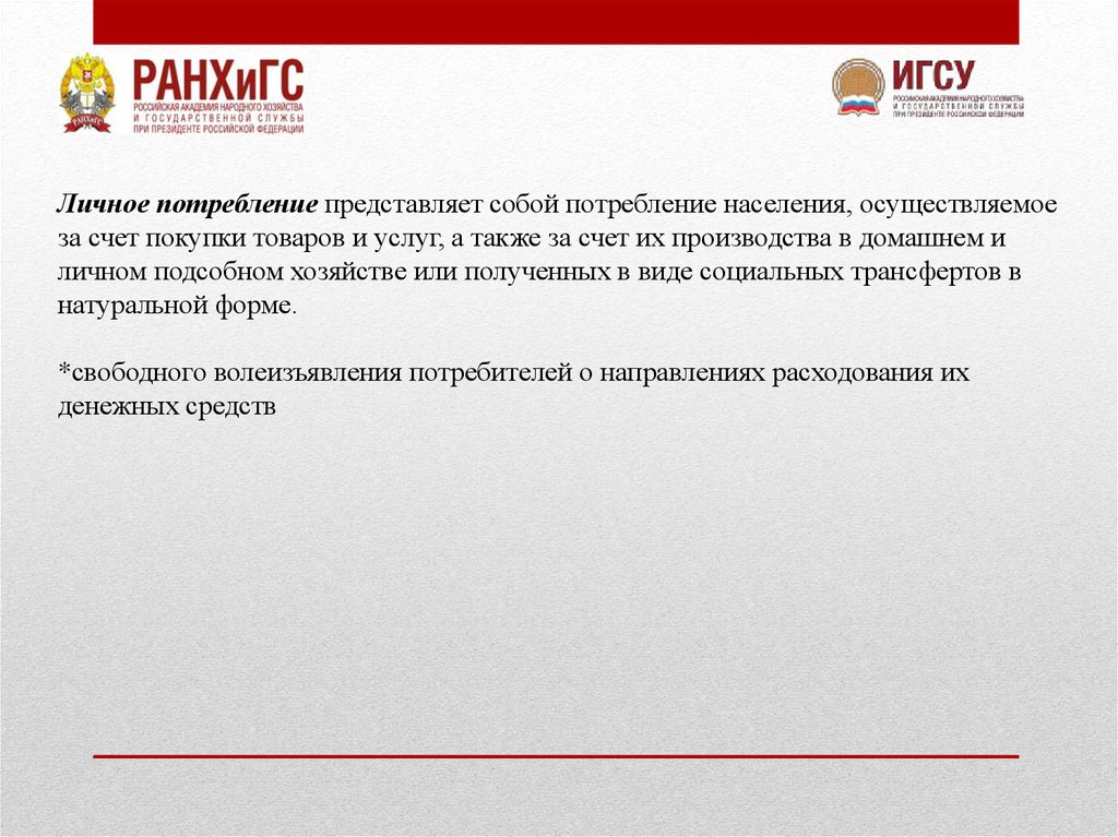 Личное потребление представляет собой потребление населения, осуществляемоеза счет покупки товаров и услуг, а также за счет их производства в домашнем и