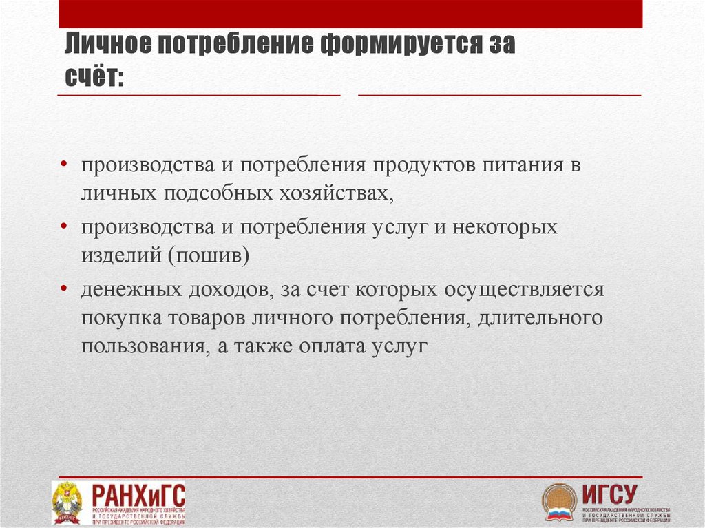 Личное потребление формируется засчёт: