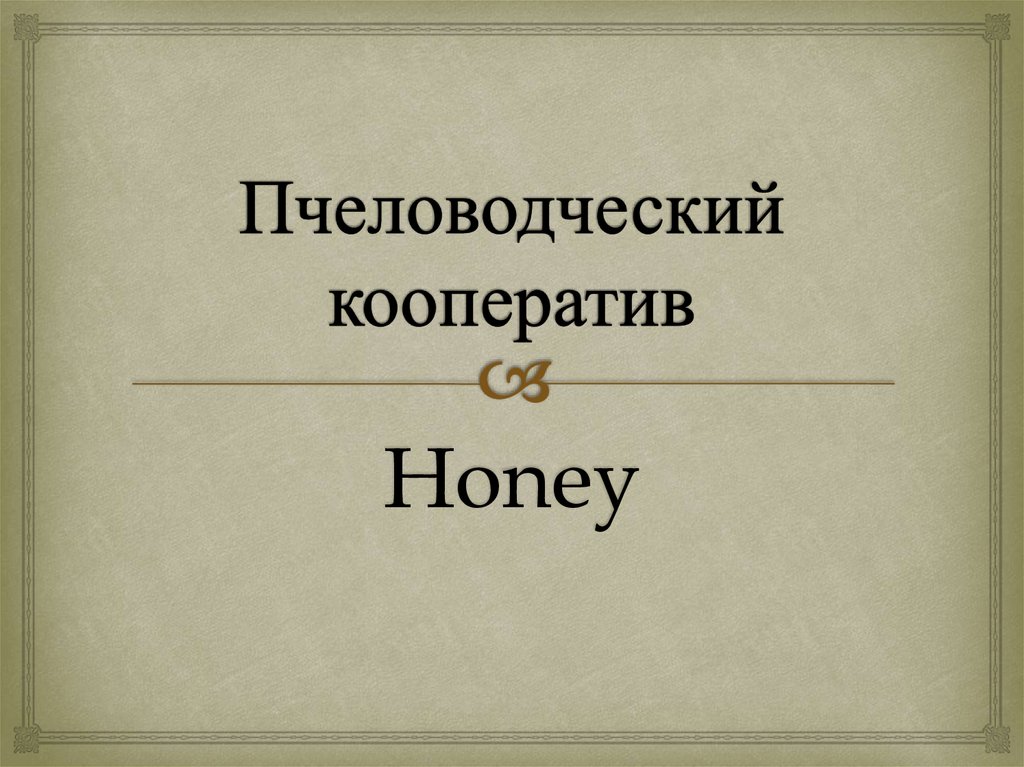 1. Пчеловодческий кооператив