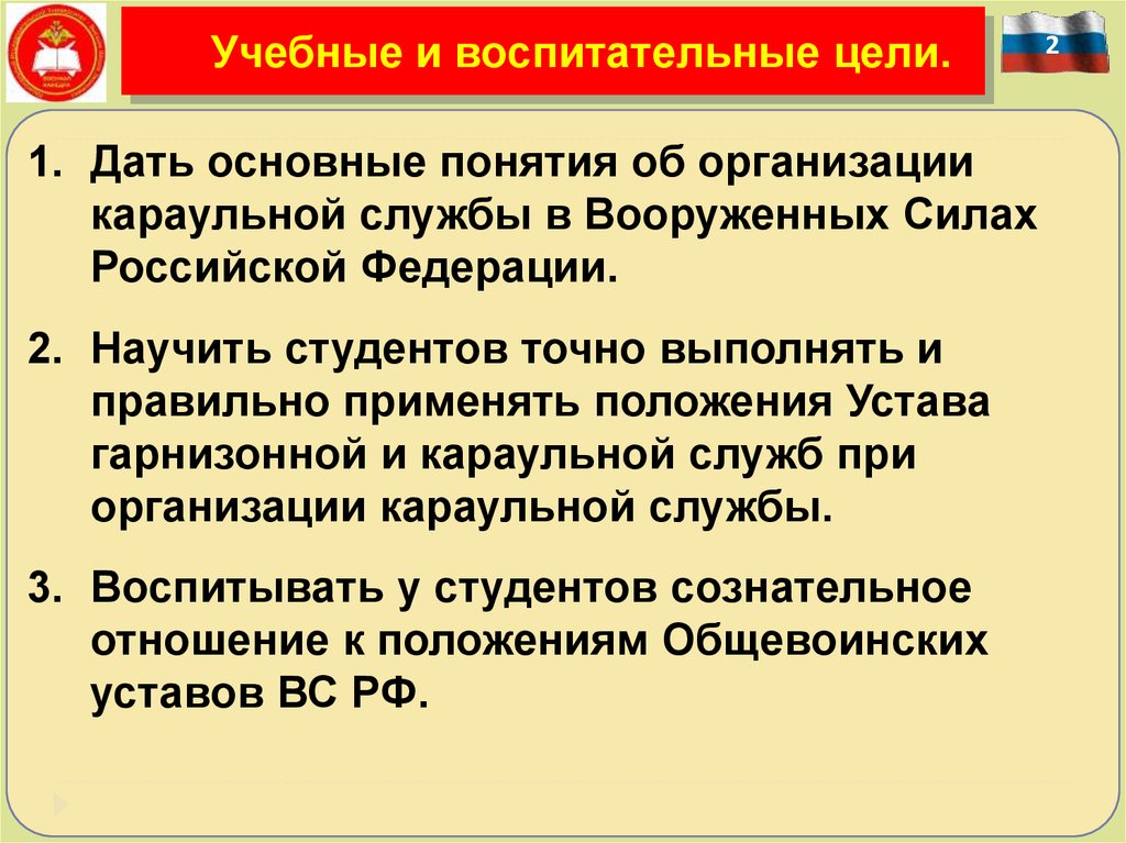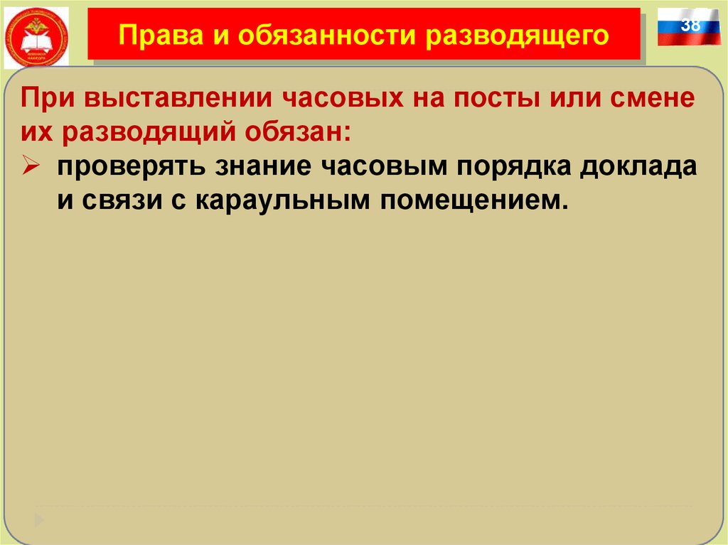 Занятие2: «Права и обязанности лиц караула»