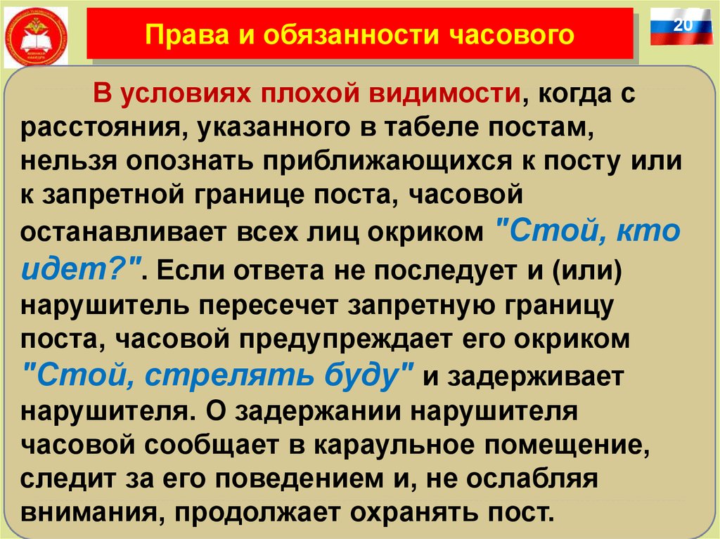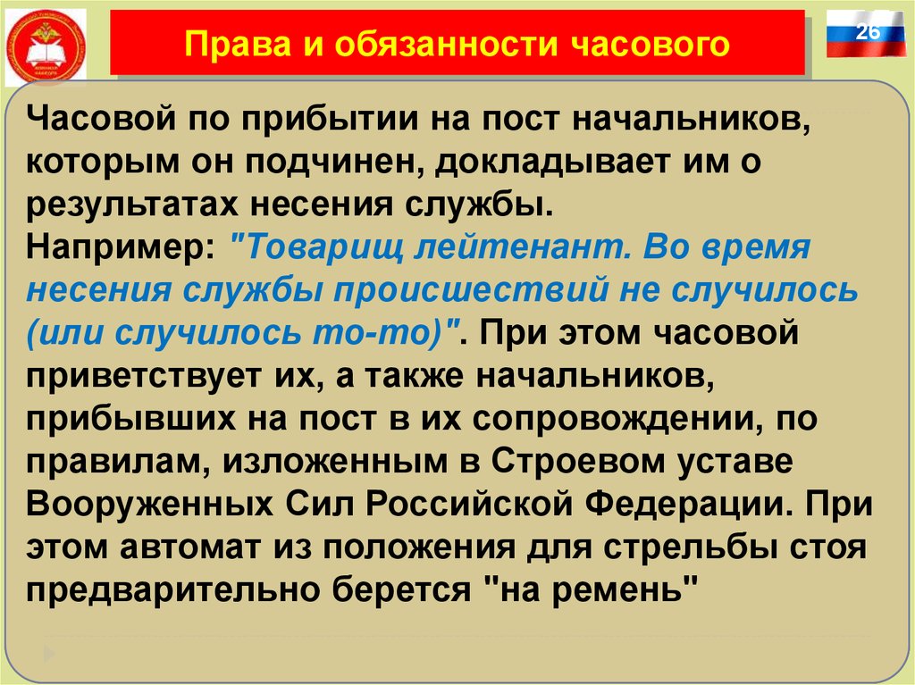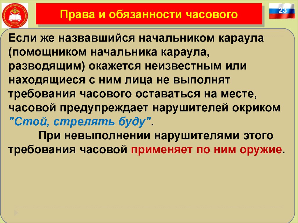 Права и обязанности часового6