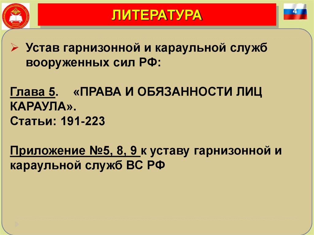 ЛИТЕРАТУРАУстав гарнизонной и караульной служб