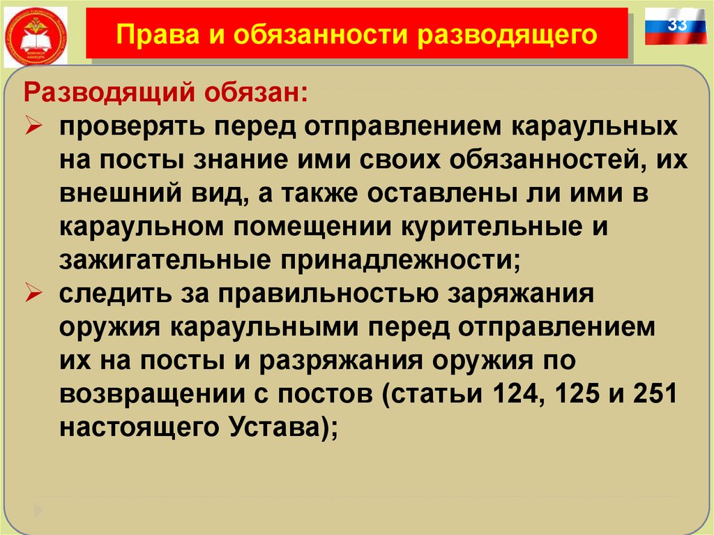 начальника караула вступает первый