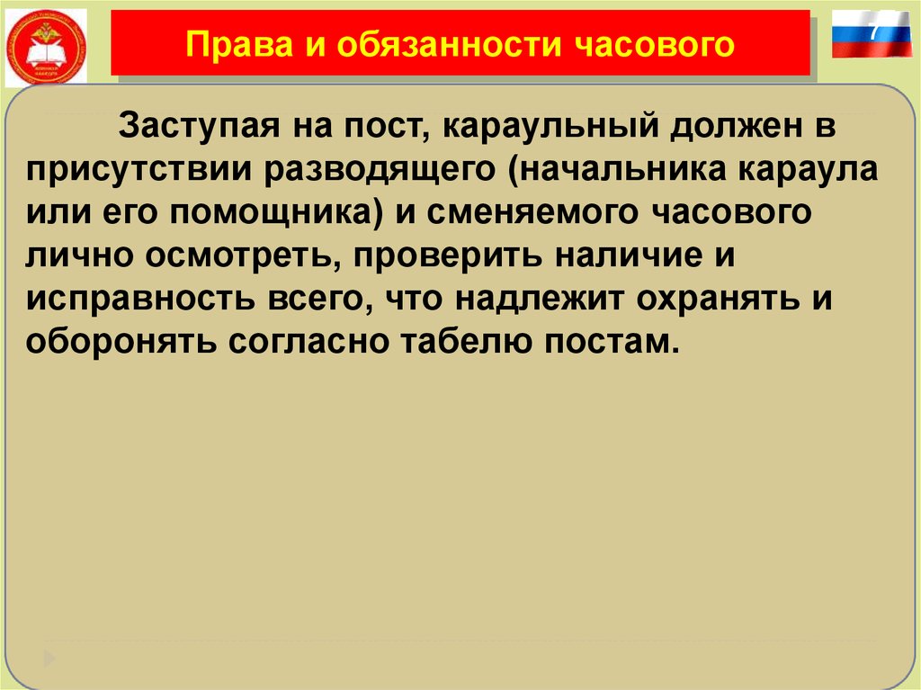 Права и обязанности часового7