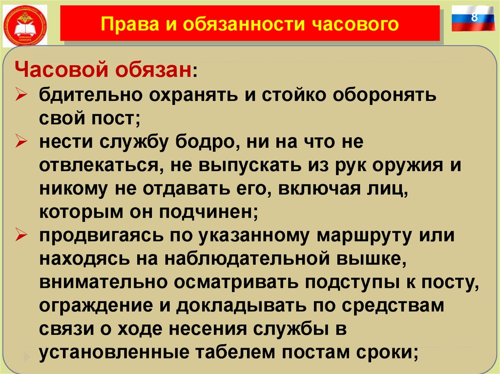 Права и обязанности часового8