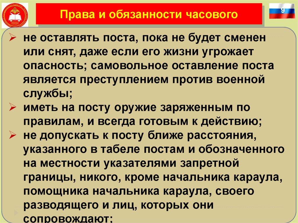 Права и обязанности часового9
