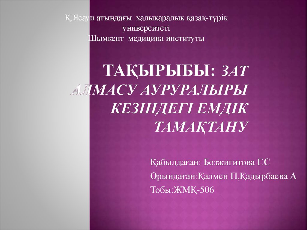Қабылдаған: Бозжигитова Г.С