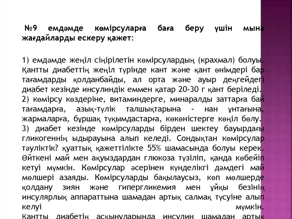 қажеттілікті арттыру керек. №9 емдәм диабет