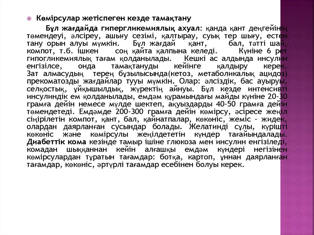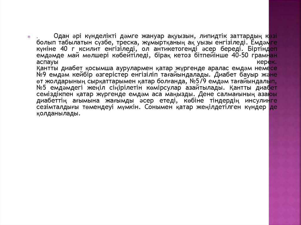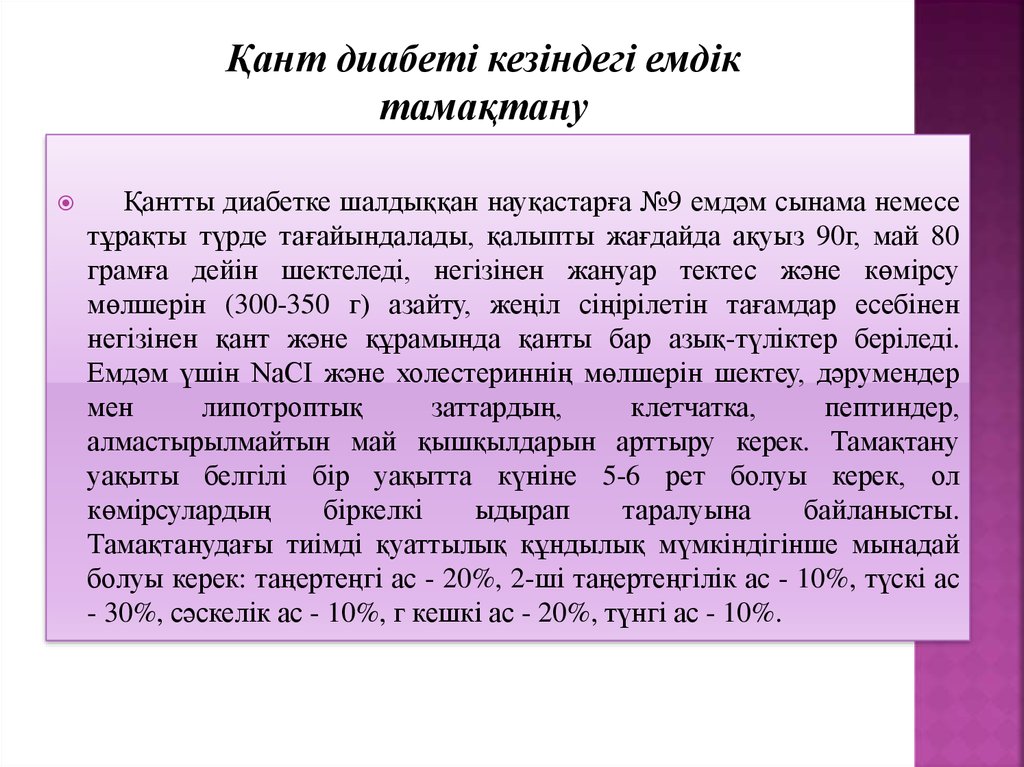 • Қантты диабеті. ҚД кезіндегі емдік