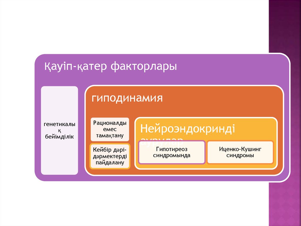 пайдалану, ішімдікті мөлшерден көп ішу, аз қозғалу себепші
