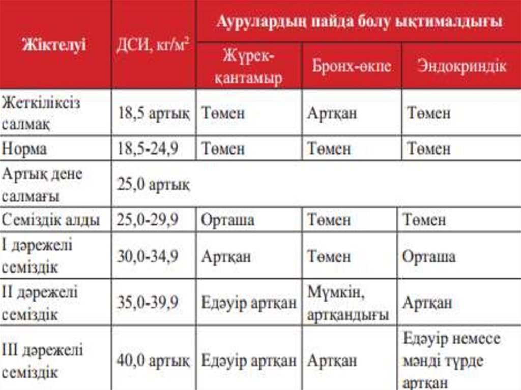 • Семіздік. Семіздік кезінде емдік