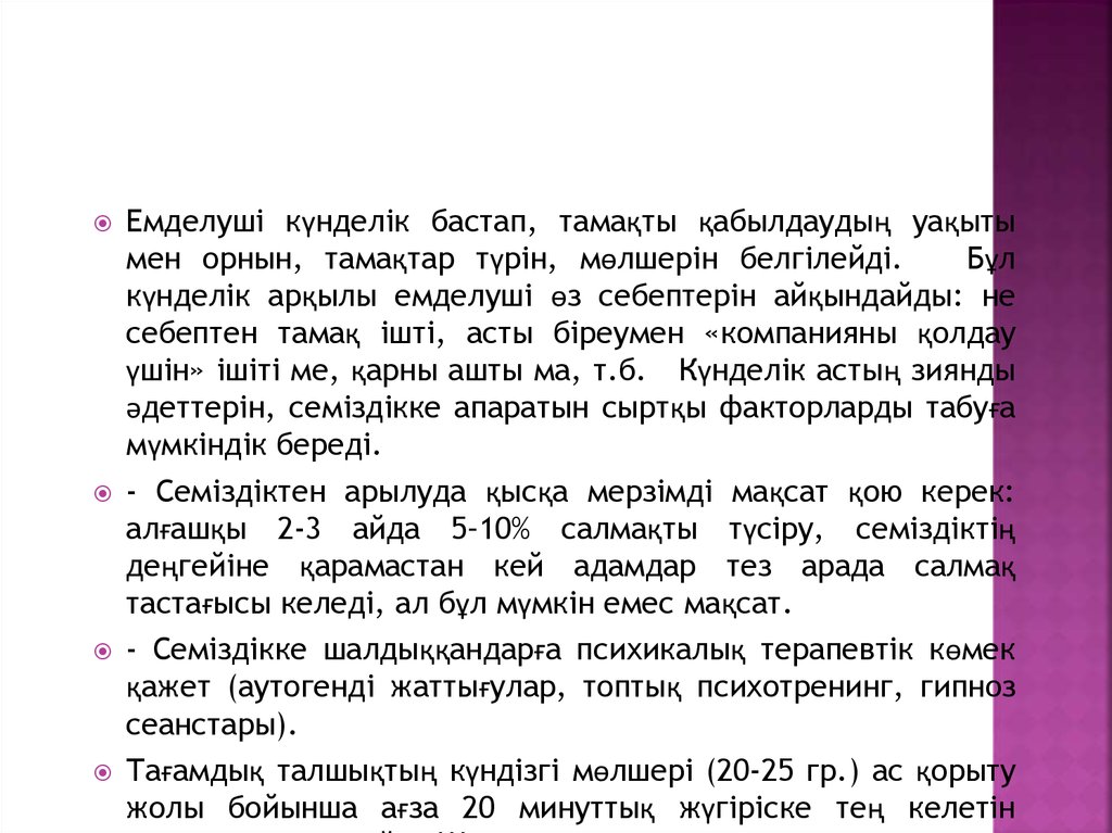 күнделік арқылы емделуші өз себептерін айқындайды: не