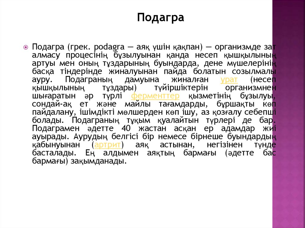 ПодаграПодагра (грек. podagra — аяқ үшін қақпан) — организмде зат