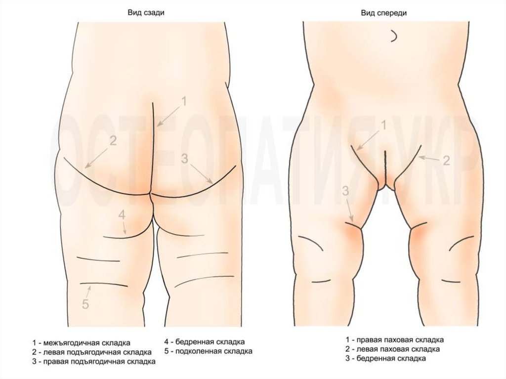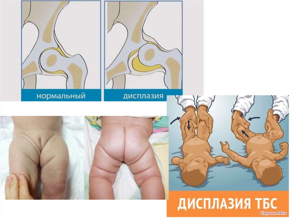 наблюдаются врожденный вывих и дисплазия тазобедренных