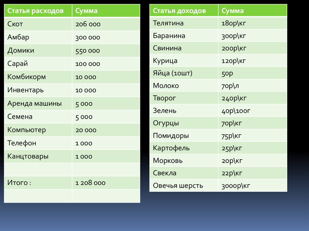 Статья расходовСумма