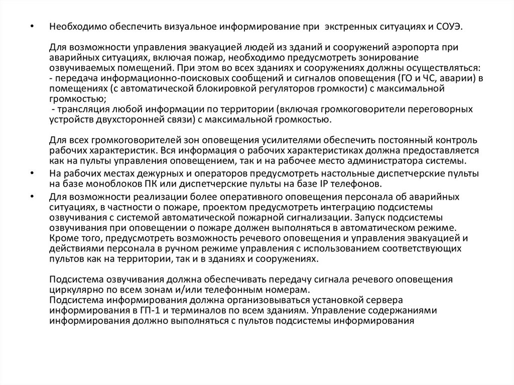 Подсистема озвучивания должна обеспечивать передачу сигнала речевого оповещения