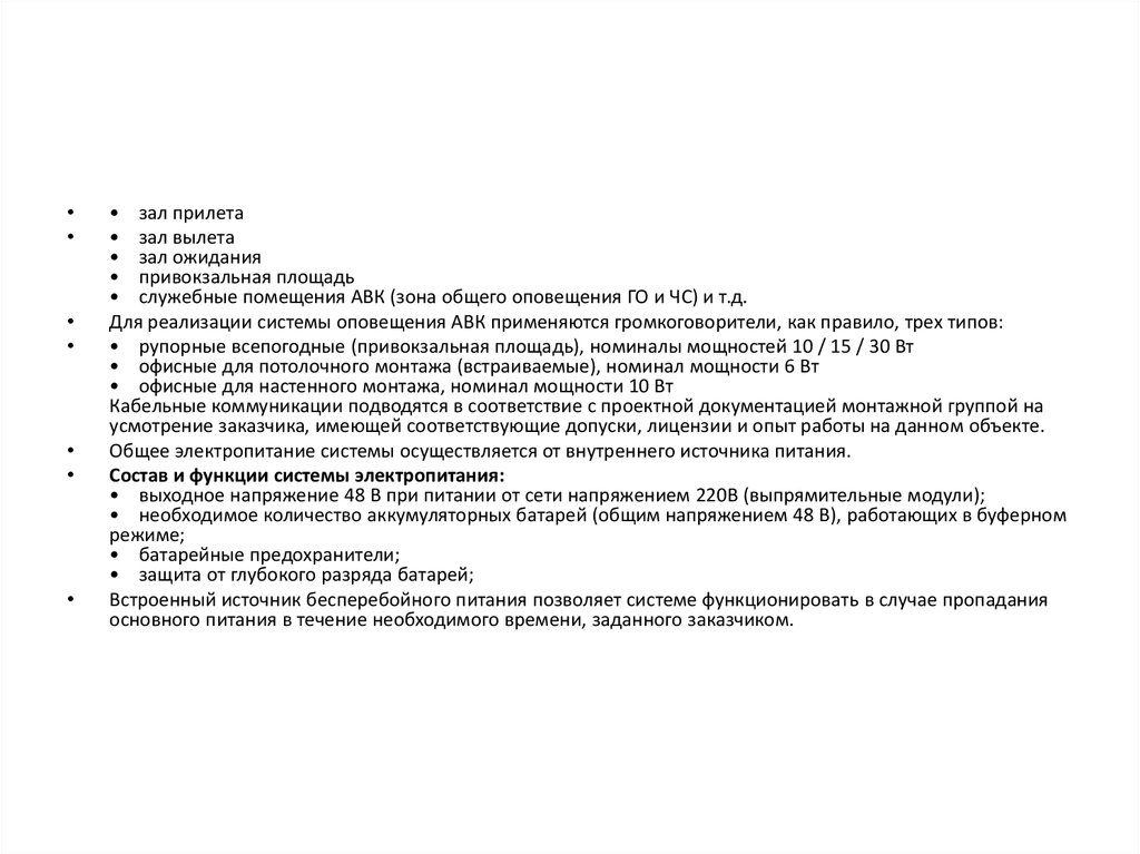 • Организация экстренной и информационной громкоговорящей сети в здании аэровокзала
