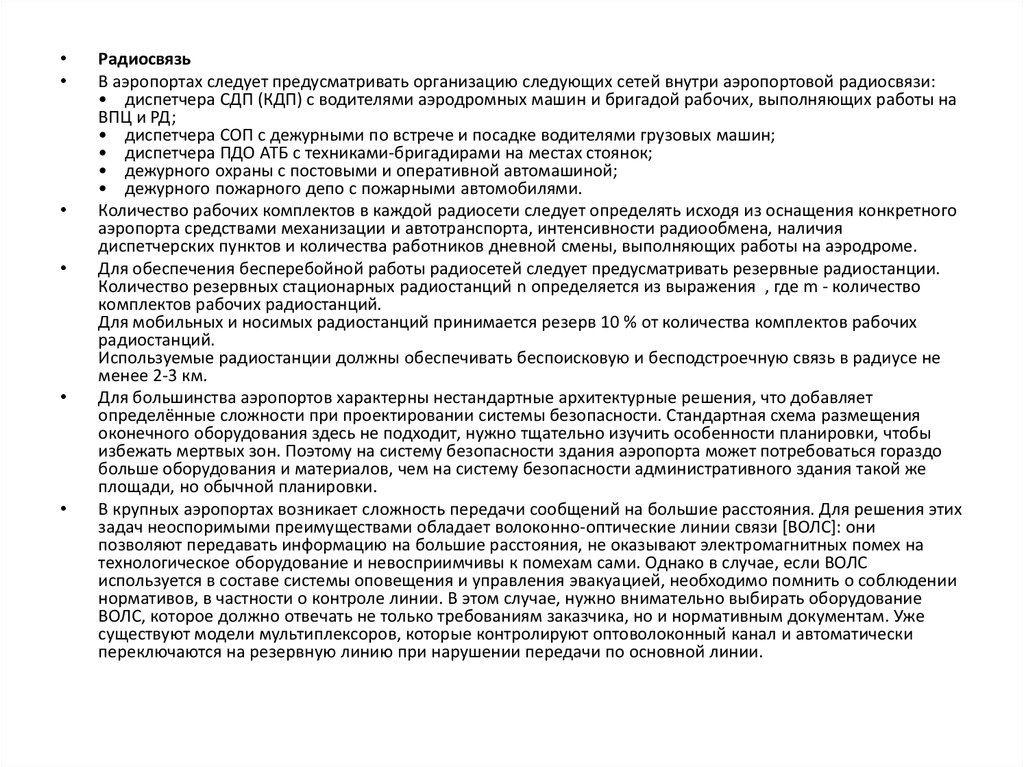 аэропорта средствами механизации и автотранспорта, интенсивности радиообмена, наличия