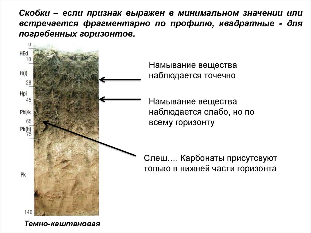 Скобки – если признак выражен в минимальном значении иливстречается фрагментарно по профилю, квадратные - для