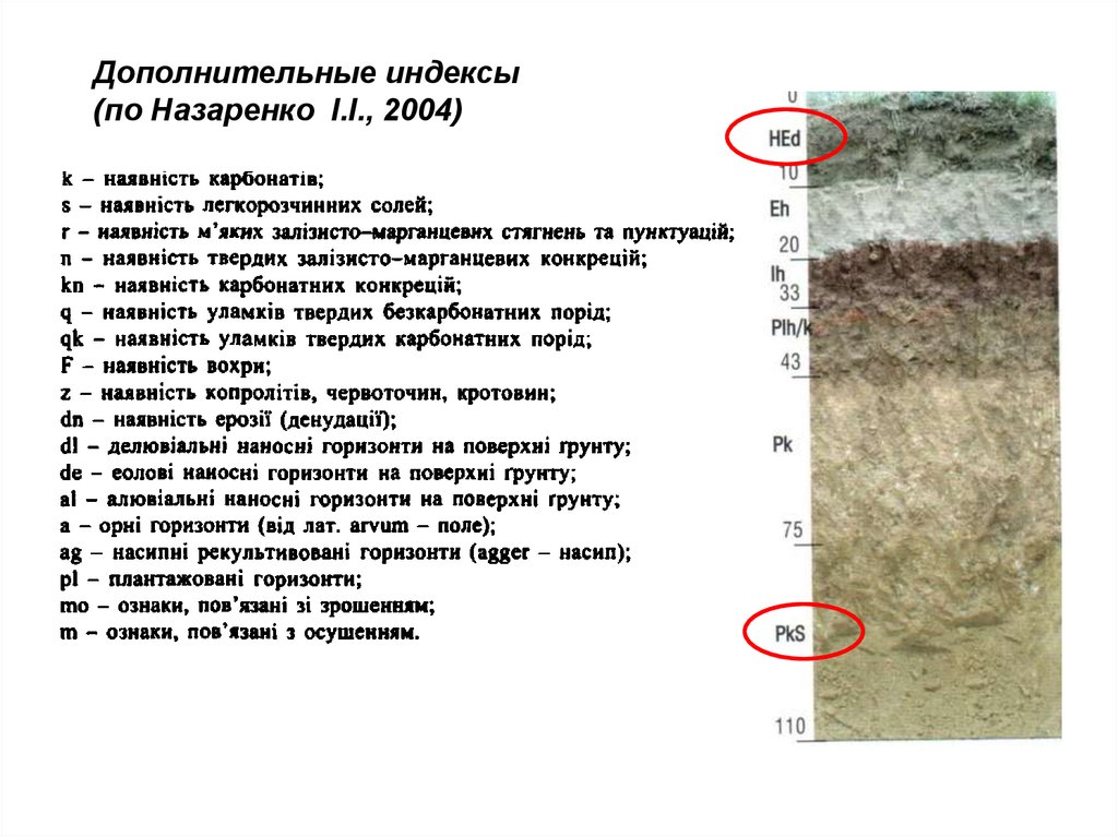 Дополнительные индексы(по Назаренко I.I., 2004)