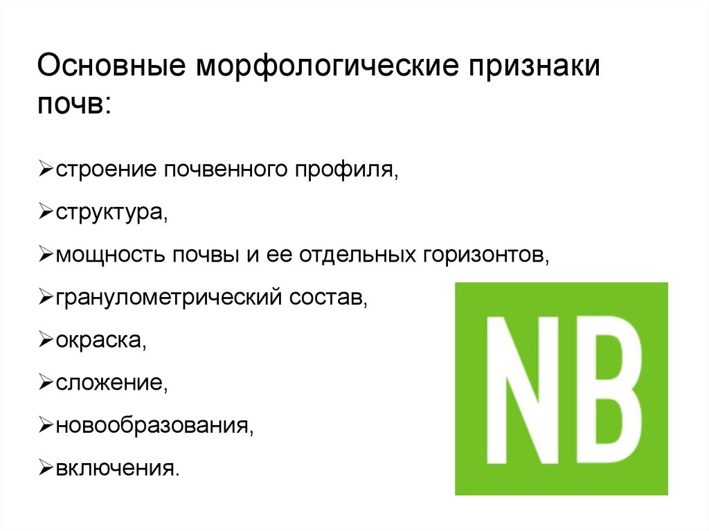 Основные морфологические признакипочв: