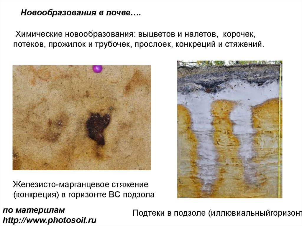 Новообразования в почве….Химические новообразования: выцветов и налетов, корочек,