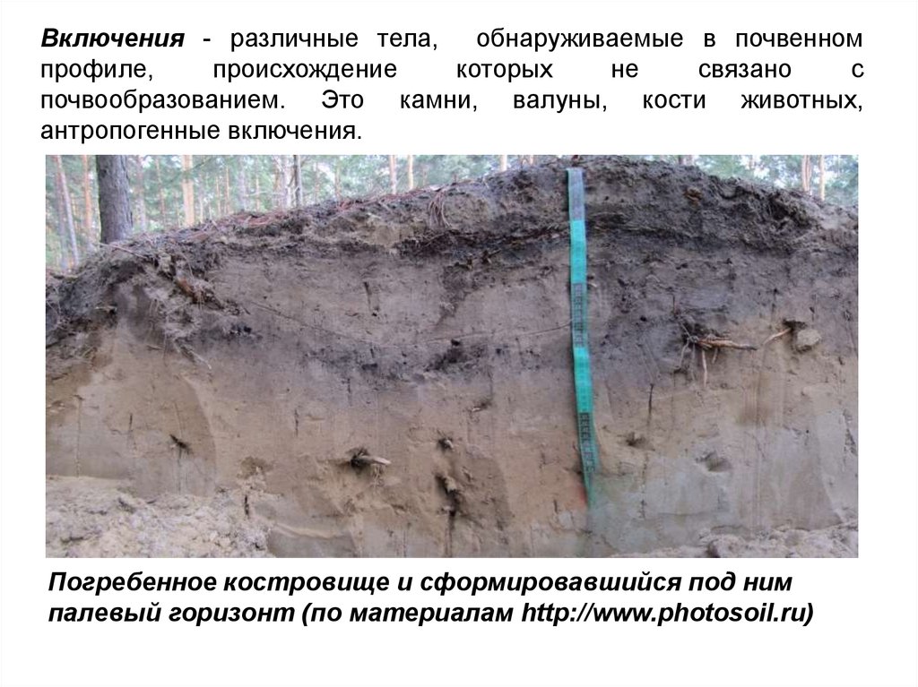 Включения - различные тела, обнаруживаемые в почвенномпрофиле,